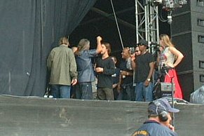 ステージの裏は壁で仕切られていて、当然入り口にはセキュリティーがいるんだけど中は丸見え。